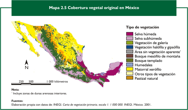 En la zona predomina el matorral subtropical y algunos matorrales crassicaules. El matorral subtropical se caracteriza por presentar de dos a tres estratos: arbóreo, arbustivo y herbáceo; el estrato más importante es el arbustivo, que presenta alturas caracterÃsticas entre 2 y 4 m. Las especies dominantes pertenecen a los géneros Acacia, Opuntia, Fouquieria, Prosopis y Mimosa. Sus copas cubren el 60% de la superficie.Matorral subtropical de 3 a 4 m de altura, 60% de cobertura.